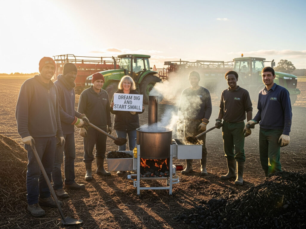 We have already learned a lot about how to make biochar, and now we are confident. We believe we can show the world that we can “Dream Big and Start Small”, starting today!