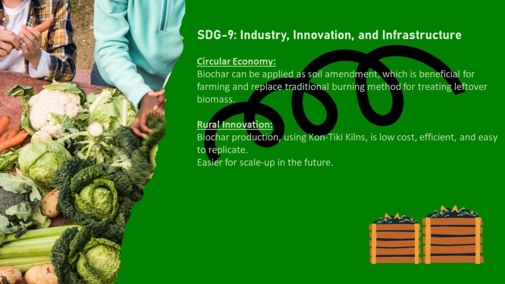 In conclusion, biochar can be the solution of some Sustainable Development Goals. Biochar has multi benefits for modern farming as well as tackling global climate challenge. Considering its benefits, we believe that we have to “Dream Big and Start Small”, starting the biochar project today, especially for smallholder farmers.