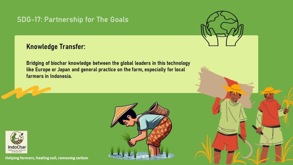 • Knowledge Transfer: this biochar campaign is the bridge of biochar knowledge between the global leaders in this technology like Europe or Japan and general practice on the farm, especially in Indonesia. This campaign is responsible for biochar consultation and accessible training for local farmers.