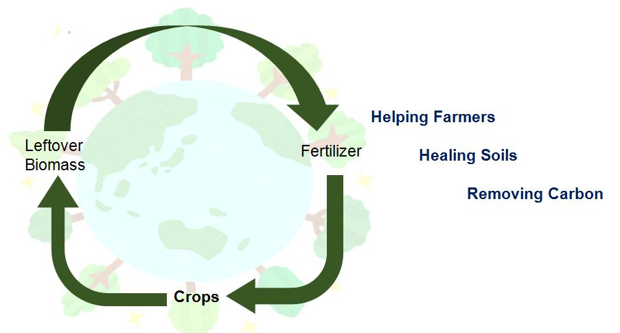Biochar can store carbon: adding it to the soil increases the carbon content in the soil and can be valuable for farming, because carbon is a key part of what plants are made of.
